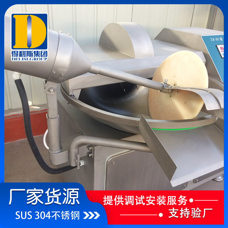 6、配有出料器,出料方便、干凈。 斬拌機可對肉類,水果蔬菜,海產(chǎn)品及調(diào)味品,進行深加工。刀高速旋轉(zhuǎn),可以縮短運行時間,減少物料發(fā)熱量,保持餡料的色澤。